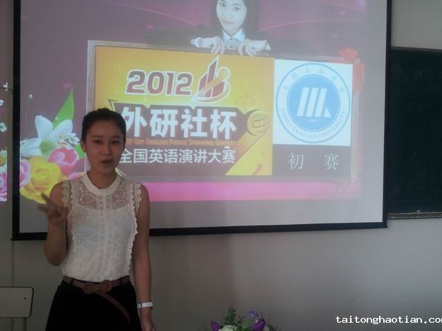 9月19日下午,英语系在多媒体语音室502举行2012年“外研杯”英语演讲比赛。英语系教学副主任赵巍炜、教师程松林、阮文琦,戴瑞等担任比赛评委。比赛设置一等奖两名、二等奖三名、三等奖五名及优秀奖数名。