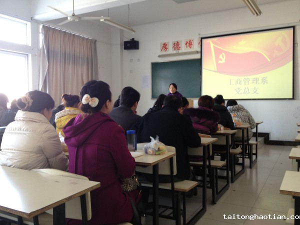 为深入学习贯彻十八大精神,12月18日下午,工商管理系召开党总支会议暨党员活动交流会。全系教职工党员参加了会议,党总支书记鲁旗会同志主持会议。