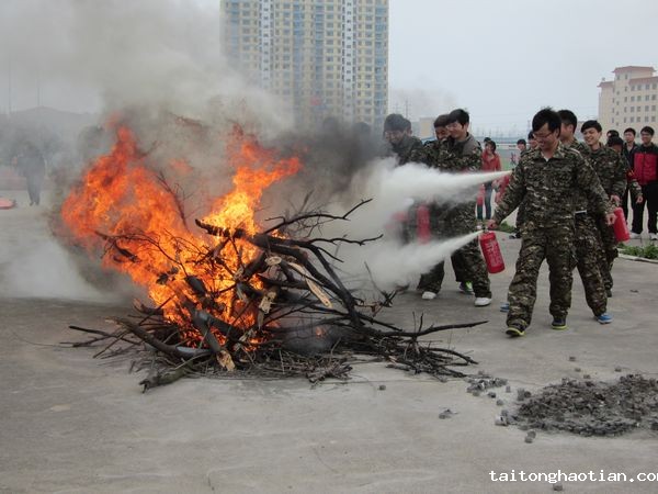 中午12:45,随着炮声与警报声骤然响起,演练正式开始。6千余名学生在辅导员、宿管员的引导下,按照指定路线,快速、有序地从各宿舍楼疏散至指定地点,整个过程用时2分55秒。演练过程紧张而有秩序,迅速而不慌乱,人多而不拥挤,取得良好的效果。在随后的消防灭火演练阶段,保卫处处长王坚伟宣布正式成立学院义务消防队,徐建海同志带领全体义务消防队队员庄严宣誓。肥西县公安局桃花派出所张宁警官亲自向义务消防队队员和同学们详细讲解灭火器的构造及使用方法,教大家正确使用灭火器。统一着装、朝气蓬勃的24名义务消防队队员积极动手,切身体验,分组进行了灭火演练。
