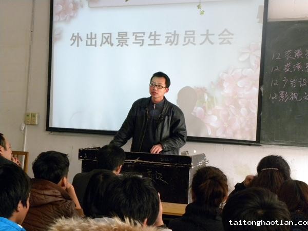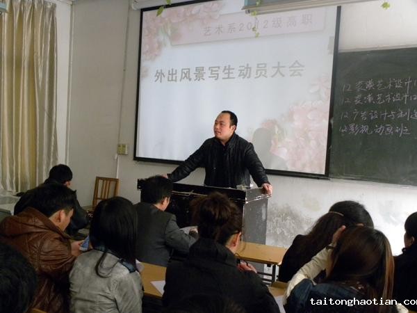 3月21日,“艺术系2012级高职外出风景写生动员大会”成功举行。动员会由孙义主任主持,屠秀栋主任和带队老师王海峰分别就写生前期准备和写生期间学生的学习、生活和安全等相关事宜做了较详尽的讲解。