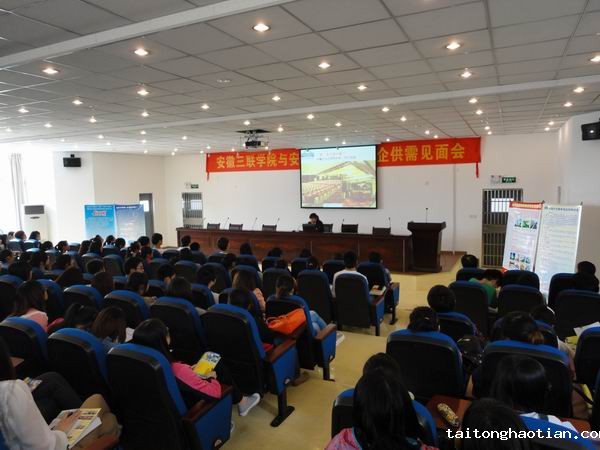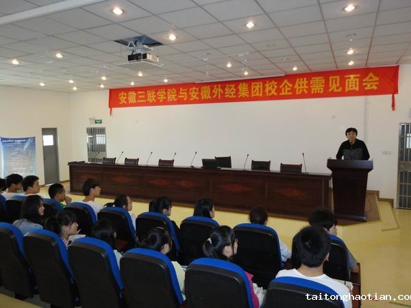 为了做好2014届毕业生的实习工作,拓宽学生实习渠道,加强学校与用人单位的联系,按照双向选择的原则,搭建起毕业生与用人单位洽谈、交流的平台,为毕业班学生提供更多的实习实训机会,5月31日下午,由英语系主办的韦德官方网址与安徽外经建设(集团)有限公司校企供需见面会在B01学术报告厅隆重举行。安徽外经建设(集团)有限公司企业发展部刘总经理、总经理助理蒋莉、安徽金孔雀温泉旅游度假村人力资源部夏经理、韦德官方网址英语系学管副主任张健、韦德官方网址就业办就业指导老师周爱军及实习实训班辅导员出席会议。