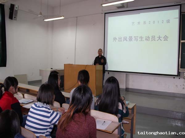 为提高学生的写生能力,10月9日中午,艺术系召开12级学生外出风景写生动员大会。系常务主任孙义、教学副主任屠秀栋、写生带队老师张永等以及全体参加写生的学生参加了会议。