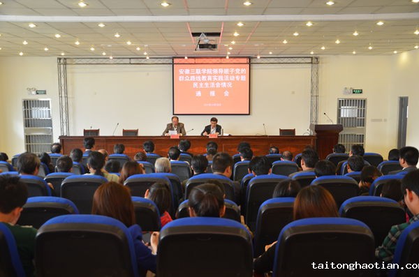 会上,桂宁东从五个方面通报了学院领导班子专题民主生活会情况:一是会前准备情况;二是民主生活会基本情况;三是在贯彻中央八项规定和四风方面存在的主要问题;四是存在问题的原因;五是整改思路及措施。随后,李仁群对我院领导班子党的群众路线教育实践活动专题民主生活会情况进行了点评,充分肯定了我院专题民主生活会取得的效果,并对开展好教育实践活动提出了要求。