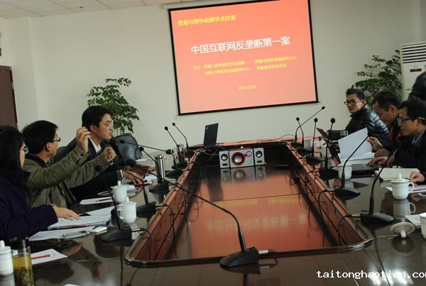 12月8日下午,由贸易与竞争政策研究中心与安徽大学法制研究中心联合举办的学术沙龙活动在T518会议室举行,主题为“中国互联网反垄断第一案——3Q大战”,由副院长姜发根主持。安徽大学法学院李胜利教授、毕金平副教授,安徽行政学院谷亚晴副教授,安徽广播电视大学文法学院何宗泽副教授,淮南师范学院孔悦老师等专家、学者应邀参加了沙龙并作了发言。