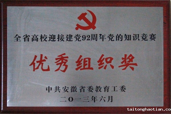 全省高校迎接建党92周年党的知识竞赛优秀组织奖