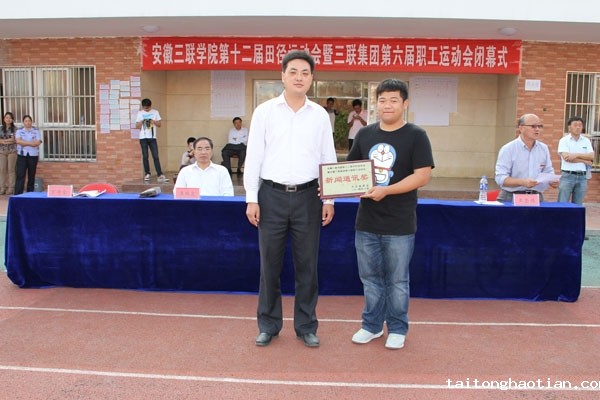 10月26日下午15时,为期两天的学院第十二届田径运动会暨安徽三联集团第六届职工运动会顺利落下帷幕。校党委副书记鲁先长、副校长王瑞友、姜发根出席闭幕式,并为获奖团队颁奖,闭幕式由工会主席王坚伟主持。