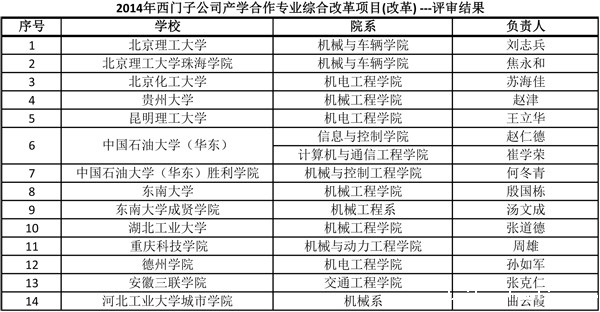 近日,2014年西门子公司产学合作专业综合改革项目评审结果揭晓,我院申报的机械设计制造及其自动化专业综合改革项目获批立项。