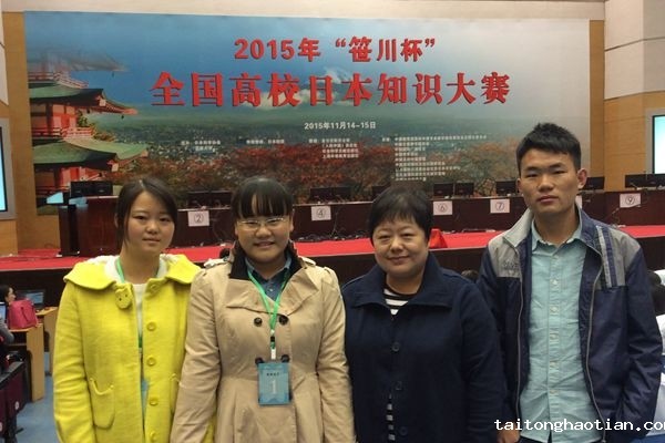 11月14—15日,我校外语学院派出代表队参加了在吉林大学举行的2015年“笹川杯”全国高校日本知识大赛。该院自9月份接到参赛通知后积极准备,并选派日语系张燕芝、叶婷婷和谢乐三位同学参赛,由黄清清老师负责指导。参赛团队在较短的时间内进行全力备战,最终在强手如云的大赛中获得了大赛团体预赛三等奖。