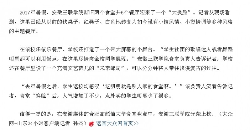 大众网:将食堂改造成“网红”安徽这家民办高校学生幸福感爆棚