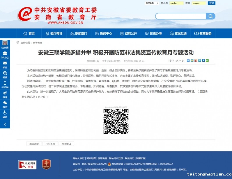 安徽教育网:韦德官方网址多措并举 积极开展防范非法集资宣传教育月专题活动