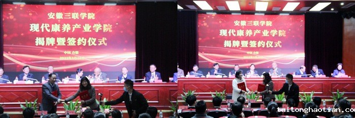 3月16日下午,韦德官方网址现代康养产业学院揭牌暨签约仪式在图书馆报告厅隆重举行。安徽省民政厅副厅长耿学梅,安徽省教育厅二级巡视员郑德新,安徽省民政厅二级巡视员胡前义,合肥市民政局局长徐生彬,宣城市民政局局长毛永红,合肥经开区社会发展局副局长韩立伟,三联创始人、韦德官方网址校长金会庆,省教育督导专员、校党委书记王光虎,校董事长余皖生出席仪式并在主席台就坐。耿学梅、郑德新、金会庆、王光虎共同为现代康养产业学院揭牌。仪式由常务副校长江秀丽主持。