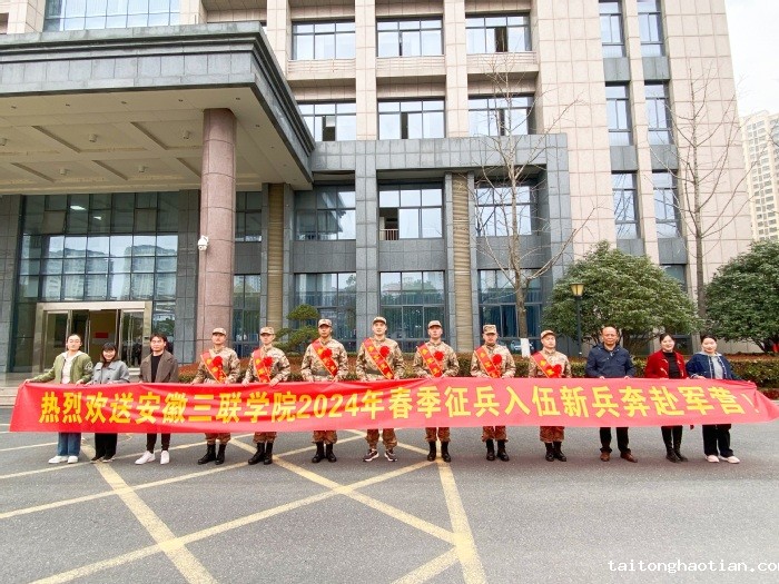 3月14日,我校2024年春季入伍学生欢送会在肥西县人武部七楼会议室举行。肥西县人民武装部副部长代松贤、肥西县花岗镇人民武装部副部长郭祖星,学生处副处长、校征兵工作站站长潘玉廉,辅导员代表、家长代表以及全体入伍新兵参加了欢送会,会议由潘玉廉主持。