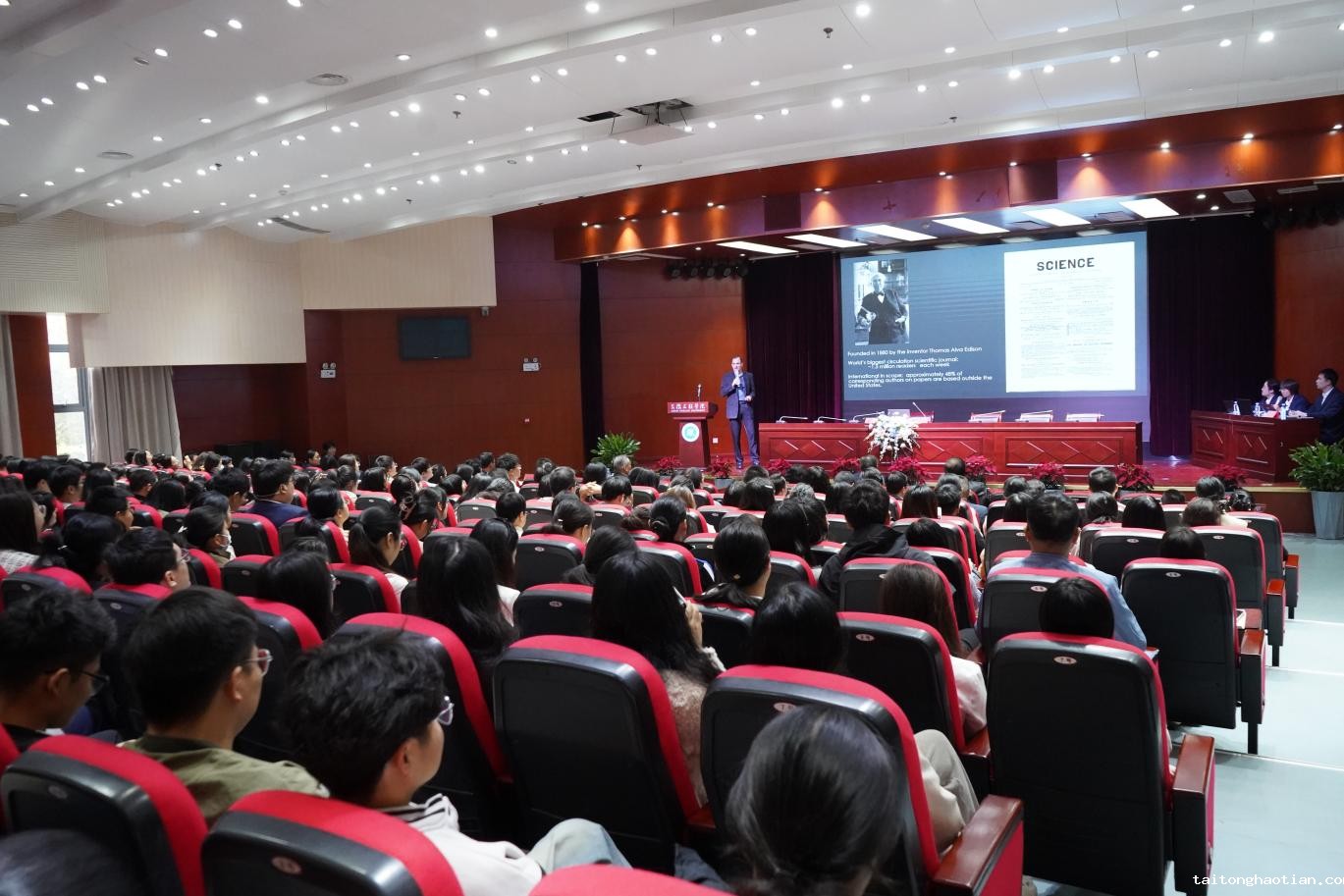 上午的学术报告会由副校长操晓峰主持。Richard Stone先生从《科学》杂志发表过的四个论文题目让师生选出引频次数最高的论文,引出《科学》杂志在重大发现传播的广泛性。随后,介绍了《科学》杂志的发展历程、论文接收过程以及cover letter和摘要写作的注意事项,并指出cover letter和摘要是一篇文章很重要的部分,也是编辑最先接触到的部分,建议论文投稿需要用精准的语言在简短的篇幅内阐述清楚研究的背景、结果和意义。然后讲述了科学新闻的吸引力价值、读者规模、重要性、结果的可靠性和及时性的五个标准。同时结合AI对高等教育的影响,以及生成式人工智能在生命科学领域,特别是新药临床开发的深远影响。同时揭示科学思维的养成,要求我们进行深入的思考和分析,从而实现对问题的创新突破,提升我们研究的深度和广度。最后,与参会师生进行了交流互动。Richard Stone先生的报告内容丰富,见解独到,为我校师生提供了一个了解国际科学前沿动态的宝贵机会。
