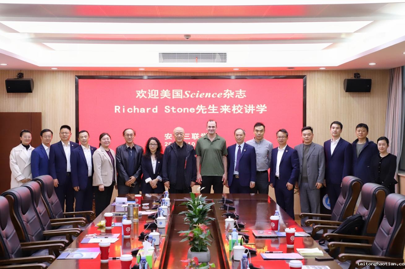 10月21日,国际著名学术杂志《科学》资深国际记者Richard Stone先生应邀来访我校,进行了一场题为SCIENCE, COMMUNICATION & THE POWER OF AI IN THE LIFE SCIENCES的学术报告,并在下午举行了专题座谈会。校长金会庆和部分在肥校领导参加活动。