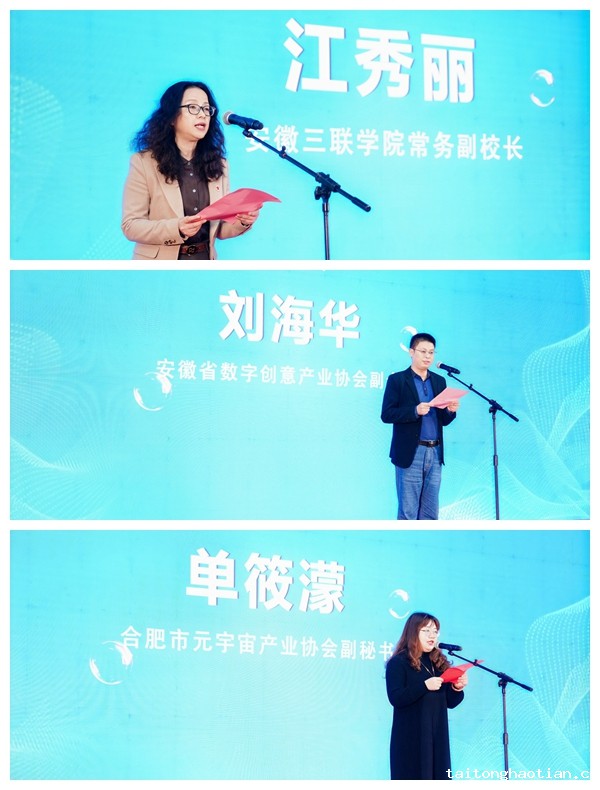 安徽省数字创意产业协会副会长刘海华,合肥市元宇宙产业协会副秘书长单筱濛先后致辞,表示今后会继续向校方输出资源,促进数字创意现代产业学院高速发展。