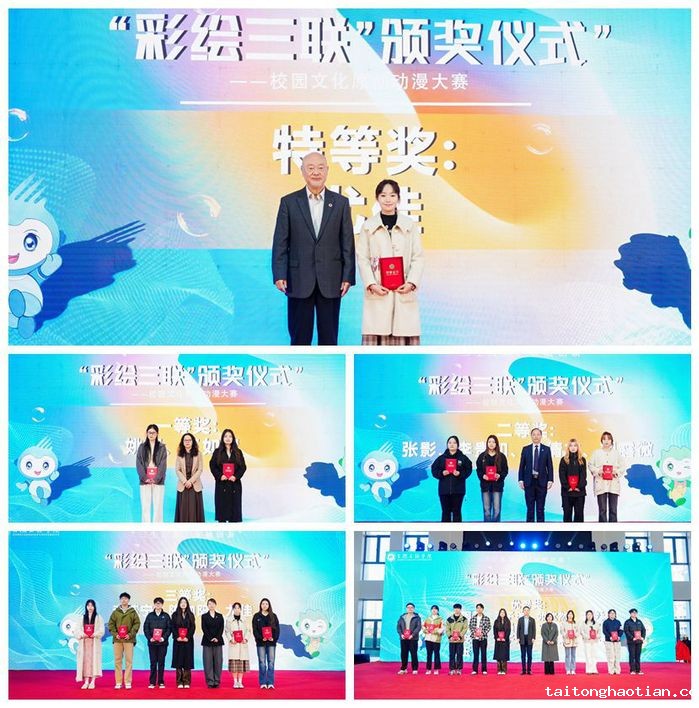 开幕式现场为“彩绘三联——韦德投注官网下载原创动漫大赛”获奖同学颁奖,该项赛事自启动征集以来,收到430份参赛作品,最终产生 25 个奖项。金会庆为特等奖获得者颁发荣誉证书。随后安徽竹稞职业教育技术有限公司总经理朱熔、潘涛一同为三联印象文创中心揭牌。揭牌仪式后,潘涛陪同大会来宾一同观摩了动漫作品展、文创产品市集及数字影像展示区,介绍了数字创意现代产业学院的发展现状及相关文创产品的开发。