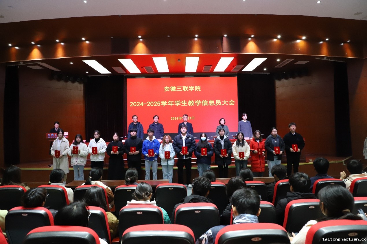 12月5日,学校在图书馆学术报告厅召开2023-2024学年优秀学生教学信息员表彰大会暨2024-2025学年学生教学信息员大会。副校长操晓峰、蔡文芬参加会议,教务处、学生处等部门负责人、全体信息站站长及学生教学信息员代表参加会议。会议由质量管理与评估办公室相关负责人主持。