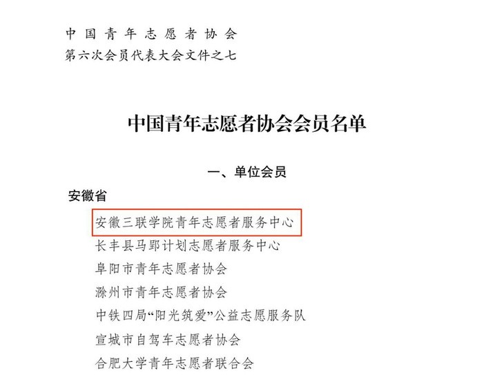 近日,中国青年志愿者协会第六次会员代表大会在北京召开,我校青年志愿者服务中心当选为中国青年志愿者协会单位会员,我校是我省唯一当选的民办高校。