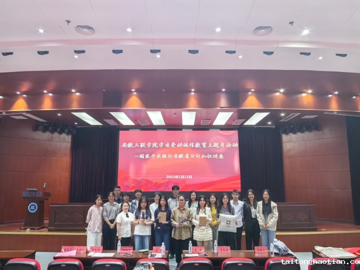 为深入普及助学贷款政策,增强学生诚信意识,提升学生风险防范能力,5月23日下午,国家开发银行安徽省分行高级经理王珺一行6人来校开展金融知识进校园暨诚信教育专题讲座,学生处相关人员及各院部师生代表200余人参加活动。