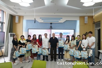 金会庆向每位教师赠送印刻三联标识的护照夹、水杯与背包,传递温暖与关怀。交流环节,金会庆深入了解教师们的专业方向,从学科发展到留学生活,均给予悉心指导,并着重叮嘱“学术突破与身心健康并重”。