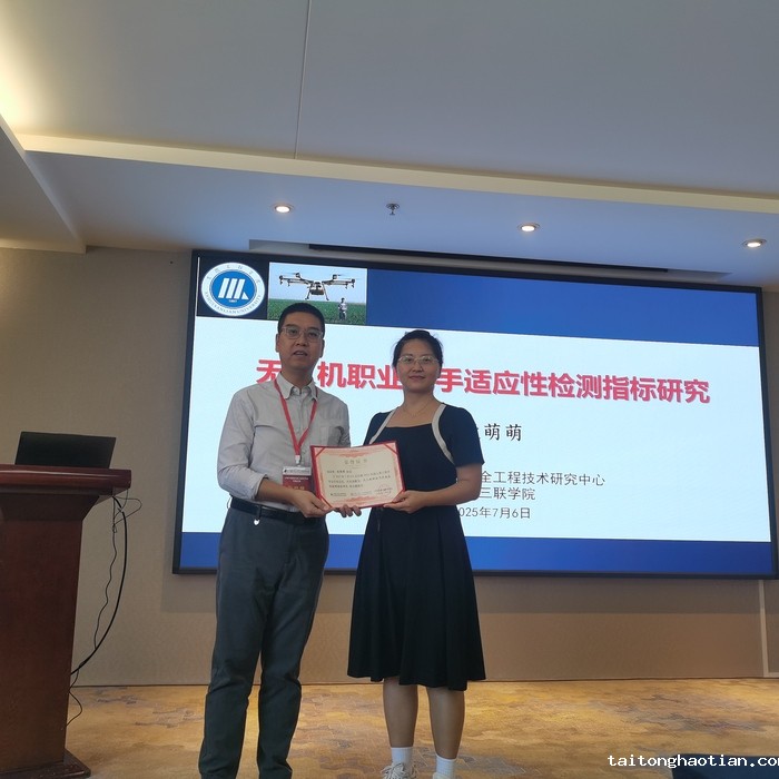 会上,我院教师段萌萌作了关于“无人机职业飞手适应性检测指标体系研究”的报告,该研究将飞手培养从“基础操作”提升至“人因智能适配”,对标准化进程有了一定的推动作用,同时也进一步促进了产学研协同发展,为低空经济安全发展注入核心动能。